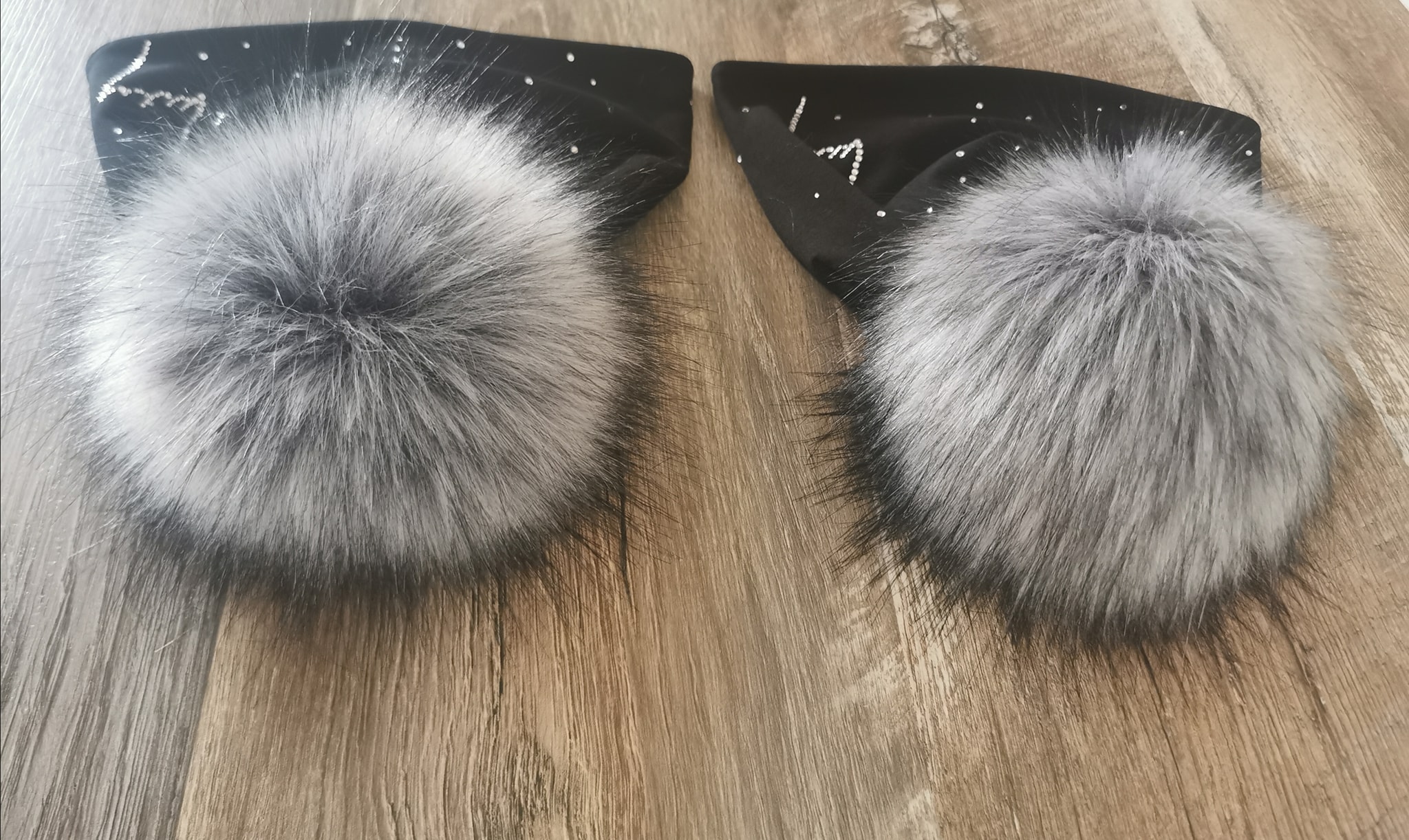 Pompom is sew from rich, long-haired or short-haired artificial fur. It is cut in cm and has an inserted strap for tying, which allows for easy attachment and removal. Pompoms are sewn to order. Delivery time depends on demand. The minimum production time is 3 days. This is extended in case of increased demand. Email designsbyjennys@gmail.com for volume discount